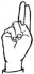 На ћирилици написано ВУКОСАВ РЖАНИЧАНИН састоји се из 17 слова [?]. Исписано ћириличном једноручном азбуком за глувонеме:
